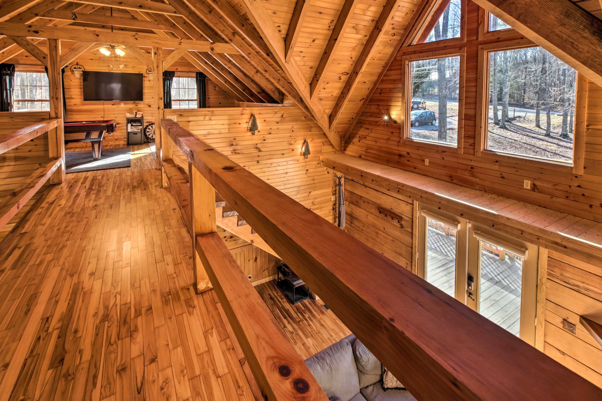 Tucked away in a serene mountain setting, this inviting cabin perfectly balances rustic charm with modern comforts. Imagine unwinding in the hot tub as snow drifts gently outside or starting your day with coffee on the wraparound porch while soaking in sweeping views. Inside, exposed wood beams, cozy furnishings, and expansive windows create a warm, light-filled retreat. Whether you’re seeking quiet relaxation, outdoor adventure, or a mix of both, this cabin offers an ideal escape. Experience the beauty of mountain living, where every moment feels like a peaceful getaway.